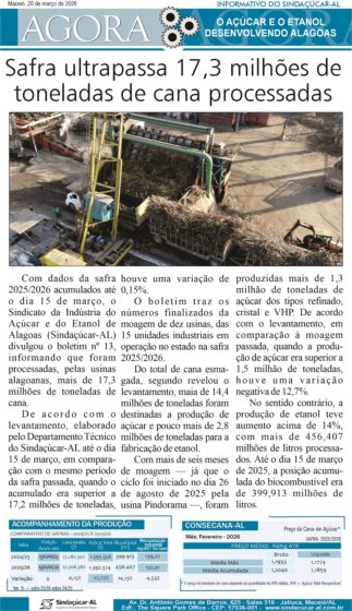 Safra 25/26 acumula 2,5 milhões de toneladas de cana processadas