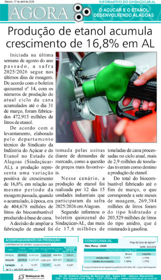 Safra de cana 2025/2026 já supera números finais do ciclo 2024/2025